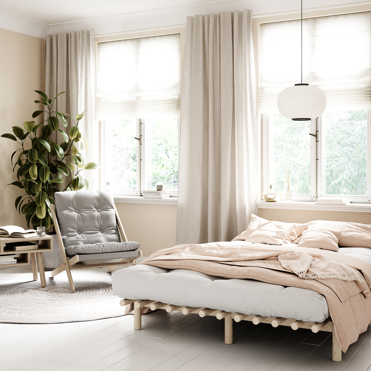 všechny základní rozměry futonů v barvě natural,  tatami, postele z borovice a sofy