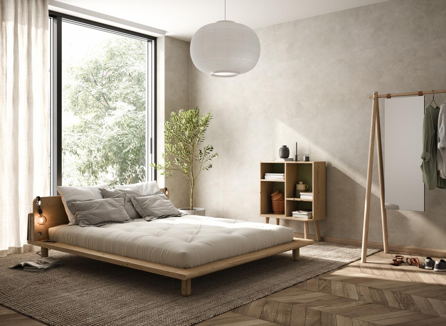 Peek je navržen tak, aby sloužil dvěma hlavním účelům: Být nádhernou postelí a poskytnout více otevřeného prostoru pro vaše věci. Postel Peek je vyrobena z masivního borovicového dřeva certifikovaného FSC® a má krásné a funkční čelo. Rám je k dispozici ze světlého dřeva. Široký rámeček umožňuje snadno ukládat a nabíjet telefon z postele a nechat vaše oblíbené knihy vykukovat zpoza čela postele. Chytré. Krásné. Dva otvory v čele jsou smysluplnými držáky pro útulné osvětlení. Vyberte si své oblíbené žárovky. Peek je kombinací několika funkcí - úložného prostoru, nočního stolku a prostoru pro skvělý noční spánek.