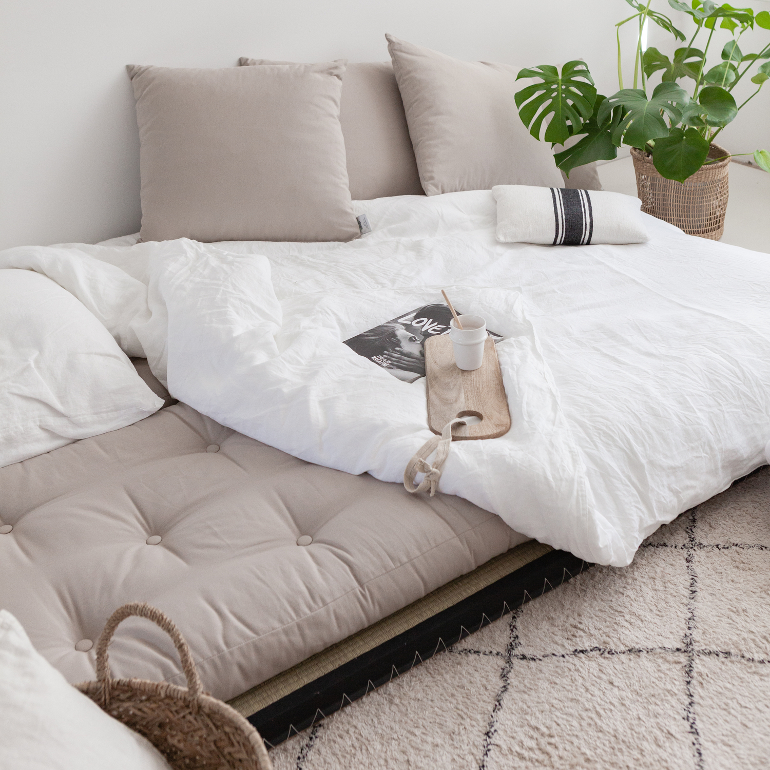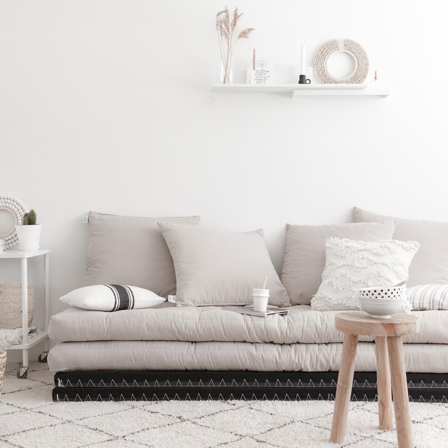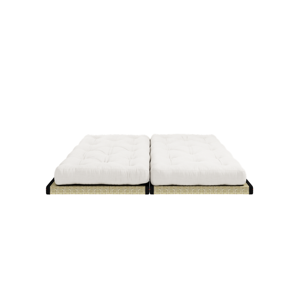 Chico je jedním z našich nejzákladnějších a nejsnáze použitelných návrhů, přičemž je vysoce přizpůsobitelný vašim měnícím se potřebám. Chico, vyrobené z pouhých dvou podložek Tatami, dvou futonových matrací a dvou sad polštářů, snadno mění svůj tvar. Nejsou zde žádné panty; ve skutečnosti jeho kusy do sebe zapadají bez jakéhokoli typu spojovacích částí. To znamená, že své Chico můžete bez námahy přeměnit na sekční, menší pohovku a dvojlůžko! Tato jednoduchá, ale účinná pohovka je skvělá pro pořádání večírků, relaxaci a hostování hostů.