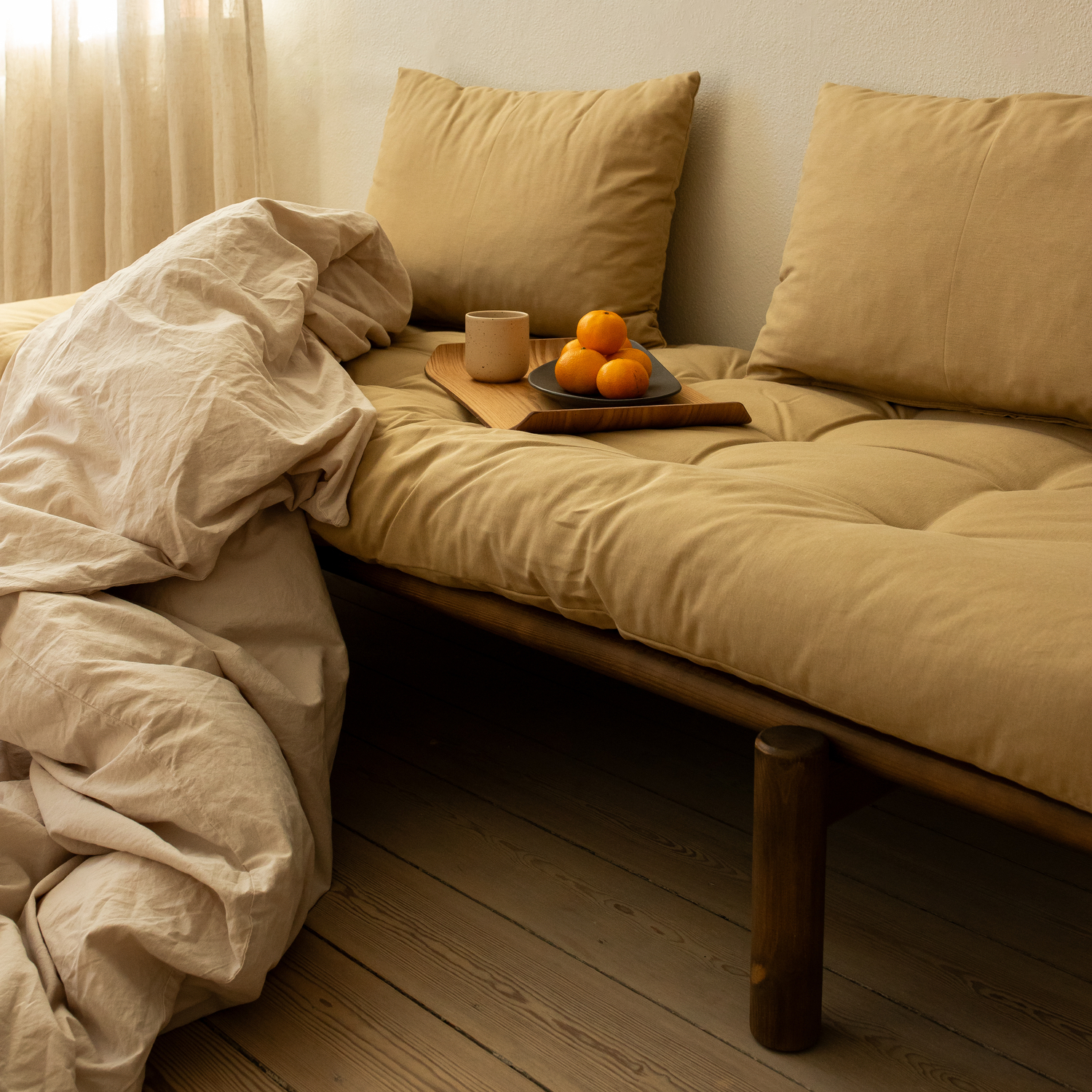 Se svými jednoduchými, ale klasickými kulatými nohami nebude Pace Daybed nikdy vystupovat ze stylu. Díky elegantnímu rámu z masivní borovice je Pace odolný i vizuálně přitažlivý. A navíc, jeho jednoduchý borovicový, černý nebo bílý rámeček a přizpůsobitelná tkanina vám dovolí, jaký typ univerzálnosti jste vždycky potřebovali od svého nábytku. Opřete polštáře proti zdi a vytvořte relaxační místo pro odpočinek s přáteli a rodinou. Můžete dokonce dát dvě sofy dohromady, abyste si vytvořili sekční gauč!