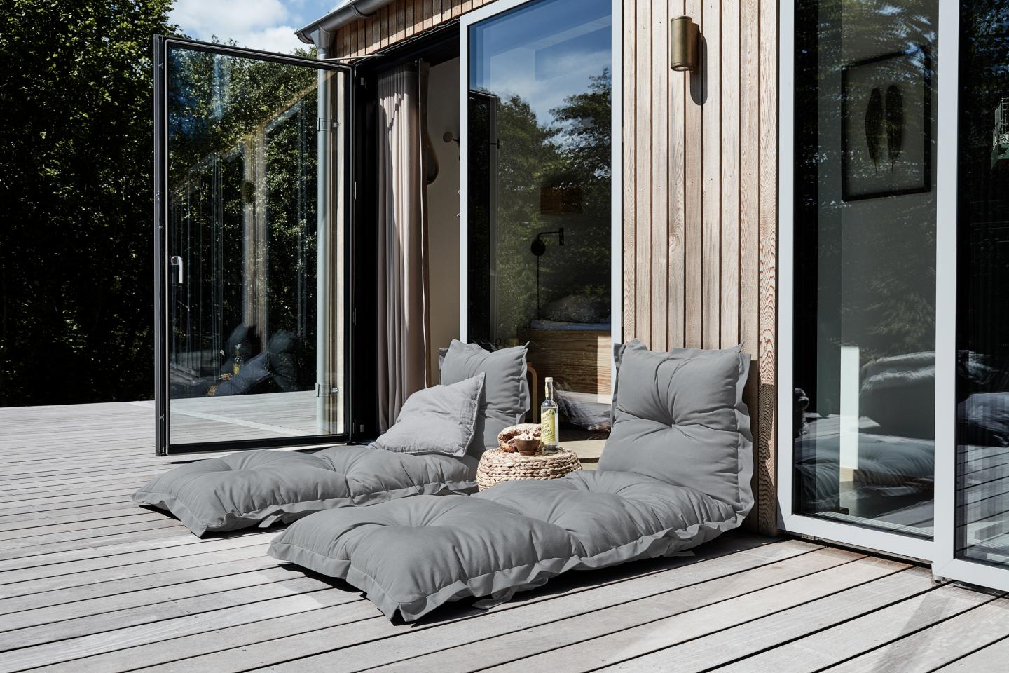 Nyní, představujeme Sit and Sleep v naší nové kolekci venkovního nábytku OUT ™ Získáte plnou magii díky prvotřídnímu potahu vyrobenému z dralonu. Díky tomu má matrace vynikající odolnost proti skvrnám a odpuzuje vodu - takže si při pohledu na oblohu můžete užívat pohodlí s úžasným futonem. Lepší výhled než na strop. Přeneste si sit and sleep OUT ™ na svou terasu, trávník nebo jakýkoli oblíbený venkovní prostor. A snadno se pohybujte, abyste získali více slunce, více stínu, více závětří a více zábavy. Více života.